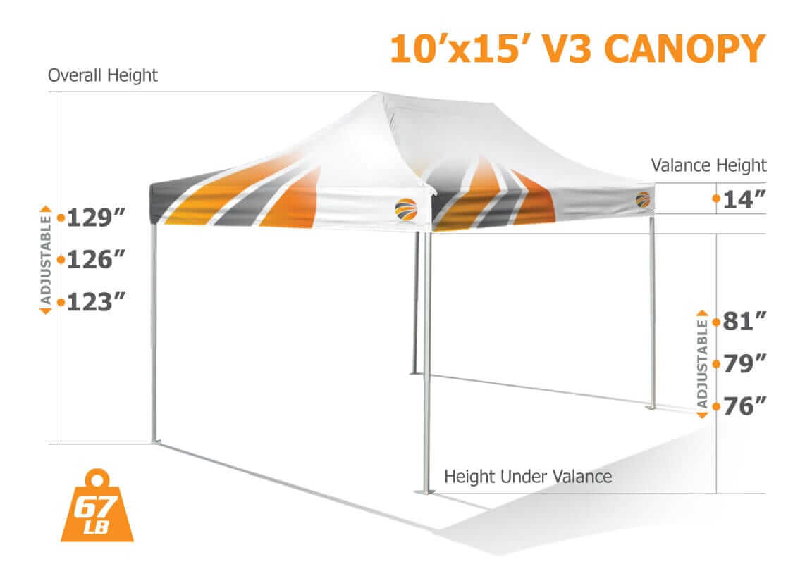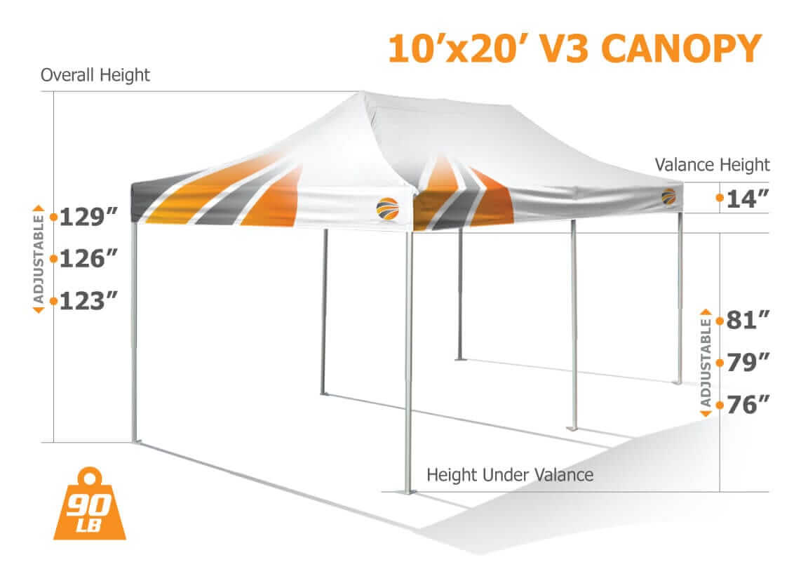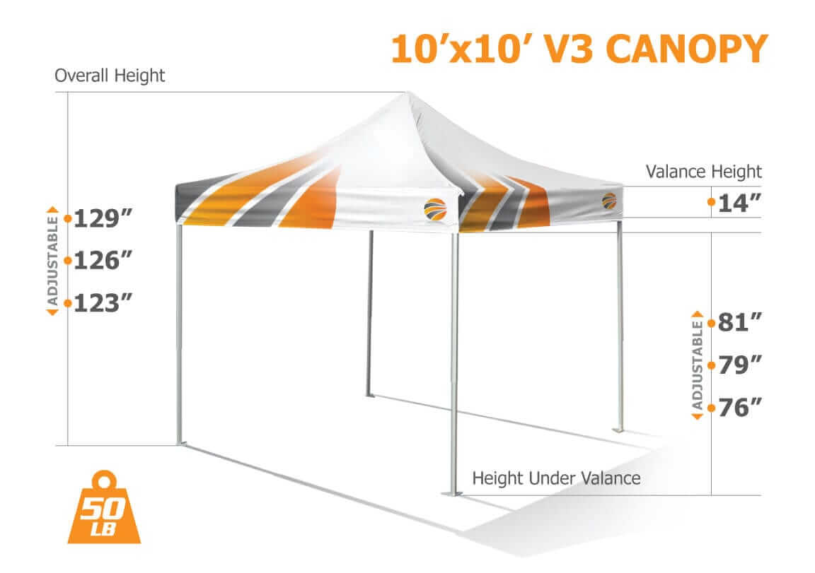 The V3 is our star pop up canopy due to its superb strength and durability. With 20 years of experience in optimization, we designed this super duty canopy tent that is ideal for intense and long term use. Created for life in any field and to help you create an impactful impression at all your events & trade shows, the V3 is made to last. You will never experience any uneventful surprises with the V3 trade show canopy tents because they are simply reliable.