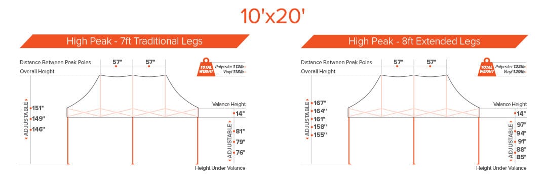 8ft extended legs to that give your tent the extra height.