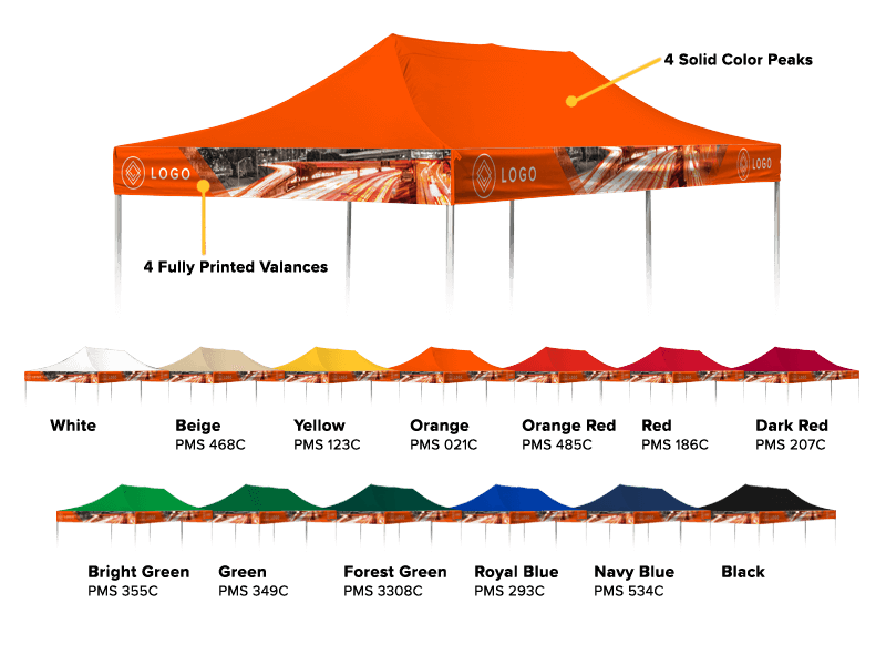 - Fits any 10’x20′ pop up tent frame we offer